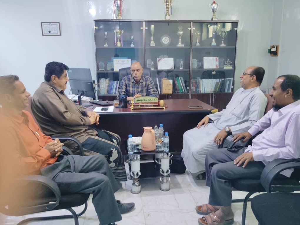 استقبل الأستاذ الدكتور سعيد سالمين بلعفير عميد الكلية بمكتبة اليوم مدير عام مديرية حورة وادي العين الأستاذ سالم صالح بن عبادين باوزير يرافقه الاستاذ سالم مبارك الحداد رئيس مؤسسة وادي العين للتنمية ومدير العلاقات بالمؤسسة الأستاذ محمد سالم بالسيول باوزير