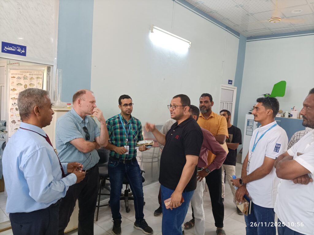 استقبل صباح اليوم أ. د. *خالد عوض الرباكي*، عميد كلية العلوم البيئية والأحياء البحرية بجامعة حضرموت، في مكتبه الأخ *توم ثورجود* المستشار الفني الرئيسي لمكتب منظمة UNDP في اليمن، والوفد المرافق له. حيث تناول الجانبان أوجه التعاون المشترك في عدد من المجالات، ومنها ما يتعلق بالأحياء البحرية وسبل الحفاظ عليها وتنميتها.بعد ذلك قام الوفد بزيارة استطلاعية لأقسام الكلية والمختبرات التابعة لها، كما قام بزيارة المزرعة السمكية لتربية الأسماك، التي يجري العمل على استكمالها في القريب العاجل.رافق الوفد كلٌّ من الأخ *محمد الهتاري* منسق برنامج S-Fish، والأخ *جمال الهوطلي* ممثل البرنامج بحضرموت. ومن جانب الكلية حضر *د. أحمد عيظة* نائب العميد للشؤون الأكاديمية والدراسات العليا، ود. *ماجد بن مسلم* نائب العميد لشؤون الطلاب، وعدد من أعضاء هيئة التدريس بالكلية.