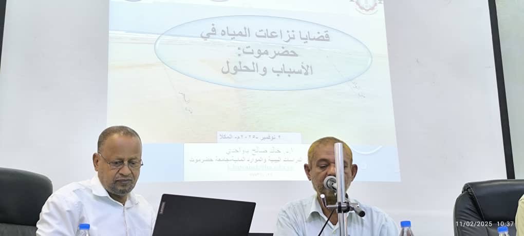 مركز الدراسات البيئية والموارد المائية يثري برنامج المحاضرات التوعوية بمحاضرة حول نزاعات المياه في حضرموت