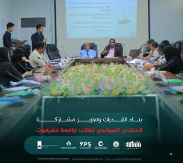 ورشة سياسية نوعية تجمع ممثلي الأحزاب في حضرموت تحت مظلة المنتدى السياسي لطلاب جامعة حضرموتشؤون الطلاب6 يوليو, 2025المكلا / إعلام المنتدى السياسي /6 يوليو 2025نظّم المنتدى السياسي لطلاب جامعة حضرموت صباح اليوم ورشة عمل نوعية جمعت عددًا ... المزيد