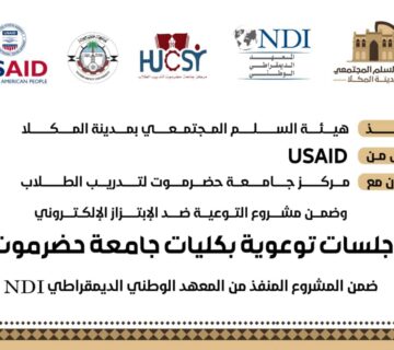 مركز جامعة حضرموت يُنهي بنجاح برنامج الجلسات التوعوية ضد مخاطر الابتزاز الإلكتروني لكليات جامعة حضرموتشؤون الطلاب6 فبراير, 2025إعلام المركز في ختام ثلاثة أسابيع متتالية من الجلسات التوعوية المكثفة، التي تأتي في ضمن فعاليات أسبوع الطالب الجامعي الرابع ... المزيد