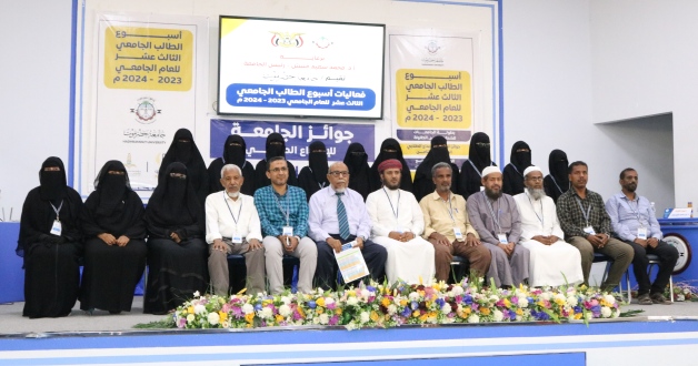 اختتمت بقاعة الأديب علي أحمد باكثير برئاسة جامعة حضرموت فعاليات التصفيات النهائية لمسابقات جوائز الإبداع الطلابي لطلاب الجامعة في ضمن أسبوع الطالب الجامعي الثالث عشر لعام 2024م، اختتمت بالمسابقة الأخيرة في مجال حفظ القرآن الكريم والحديث الشريف.