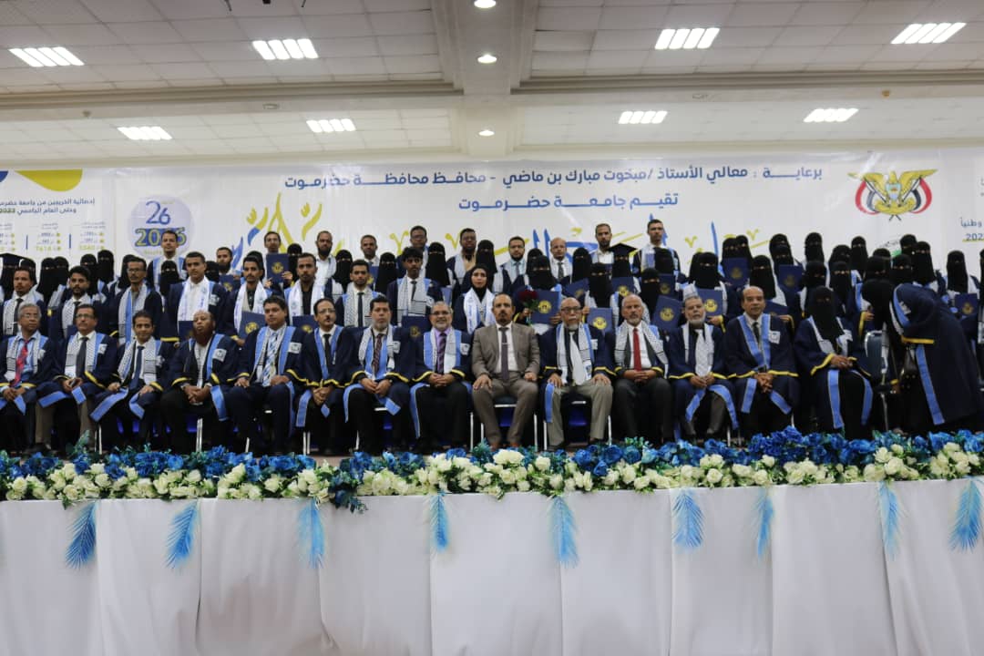 وفي ختام الحفل قال محافظ حضرموت ورئيس الجامعة ونوابه وعمداء الكليات بتكريم أوائل خريجي الدفعة الـ 26 والحاصلين على مرتبة الشرف البالغ عددهم “475” من أصل 2066 خريجًا وخريجة هم قوام الدفعة الـ 26 من مختلف كليات الجامعة.