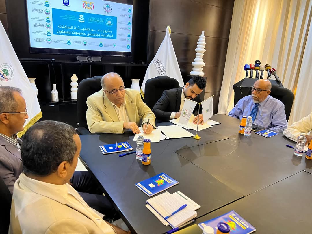 جرى اليوم بمدينة المكلا التوقيع على اتفاقية مشروع دعم تغذية السكنات الجامعية بجامعتي حضرموت وسيؤن بين مجلس حضرموت الوطني (الجهة الممولة )ونادي الطالب الجامعي (الجهة المنفذة)