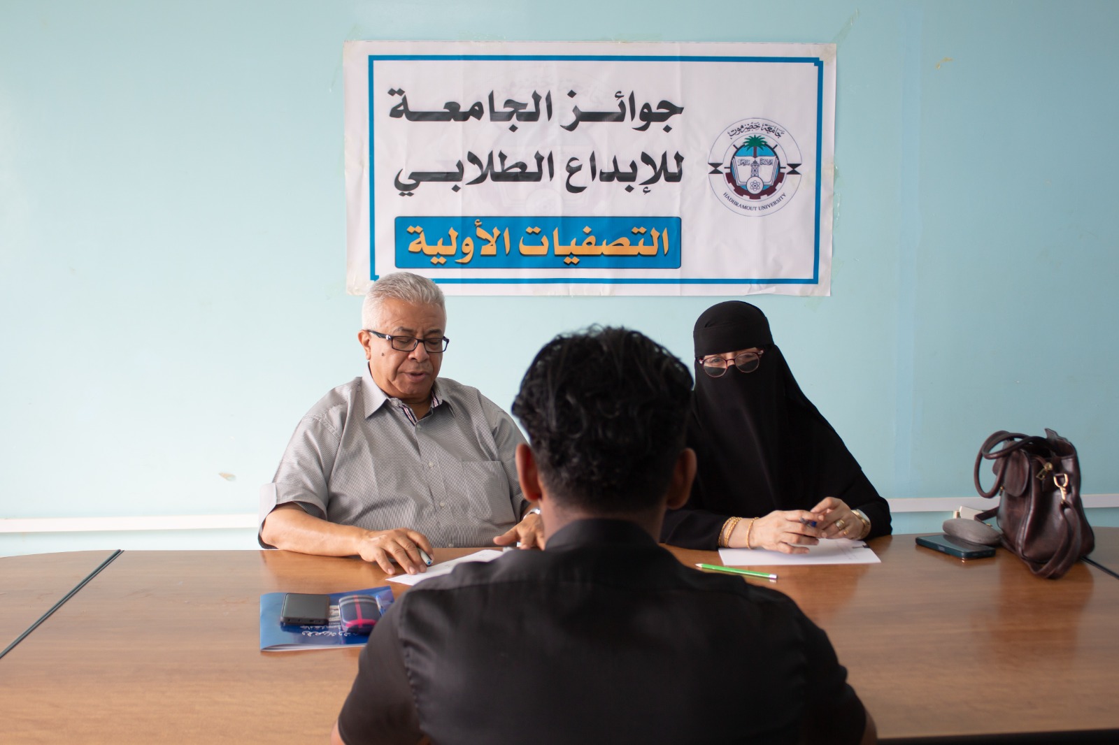 انطلقت صباح اليوم التصفيات الأولية لجوائز الإبداع الطلابي بجامعة حضرموت ، في ضمن فعاليات أسبوع الطالب الجامعي الرابع عشر ، بمشاركة ٣٧ طالبًا في مجال الإلقاء الإذاعي ،و ٤٥ طالبًا في مجال القرآن الكريم .