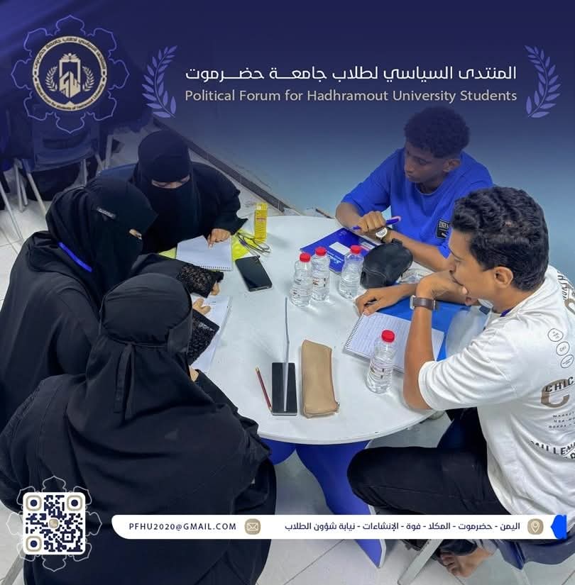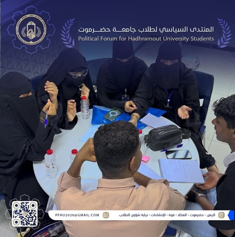 وتأتي هذه الورشة في ضمن سلسلة الأنشطة التدريبية التي ينفذها المنتدى السياسي لطلاب جامعة حضرموت، بهدف تنمية قدرات الشباب الجامعي وتعزيز ثقافة النقاش البنّاء واحترام الرأي الآخر.