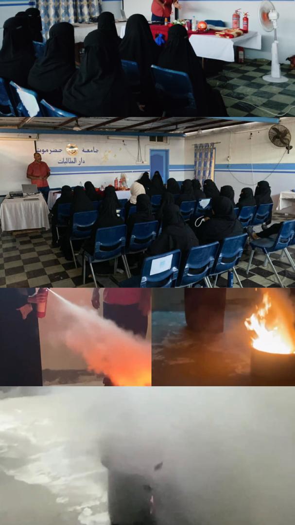 أقامت دار الطالبات يوم الاثنين الموافق 13 / 10 / 2025 دورة تدريبية بعنوان (السلامة من الحرائق)، برعاية نيابة شؤون الطلاب بجامعة حضرموت، قدم الدورة المدرب خالد دحدح نائب مدير الدفاع المدني بمحافظة حضرموت.