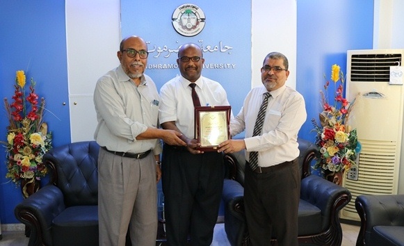 كرم الأستاذ الدكتور / محمد سعيد خنبش رئيس جامعة حضرموت بحضور الأستاذ الدكتور / سالم مبارك العوبثاني نائب رئيس الجامعة لشئون الطلاب الأخ / فهيم عبدالله العفاري مدير عام وحدة شئون الطلاب بوادي حضرموت والمدير العام للأنشطة والخدمات الطلابية الأسبق وذلك لأنتهاء فترة عمله في جامعة حضرموت وانتقاله لجامعة سيئون .