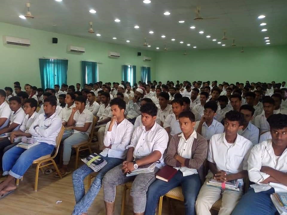 أقيم صباح يوم الخميس الموافق 2019/12/5 اللقاء التعريفي عن آلية القبول والتسجيل في جامعة حضرموت بقاعة الأنشطة والاجتماعات بثانوية بامطرف للبنين، تحدث فيه الأستاذ محمد عاشور باجبير المسجل العام بالجامعة، والأستاذ عبدالله عبدالرؤوف بن ثعلب مدير إدارة القبول والتسجيل. وقد بدأ المسجل العام بتقديم تعريف وافٍ عن الجامعة وكلياتها وأقسام كلياتها، وأنظمة الدراسة الجامعية من قبول عام، ونفقة خاصة، وتعليم موازٍ، وتعليم مفتوح. ثم تطرق إلى كيفية التسجيل وطرائقه ومدته، حاثًّا الطلاب على الاستفادة من هذا اللقاء ليبصرهم في عملية التسجيل، وليساعدهم على حجز مقاعدهم في كليات الجامعة. ثم تحدث بعد ذلك الأستاذ عبدالله عبدالرؤوف بن ثعلب موضحًا كيفية القبول والتسجيل في كل كلية على حدة، والنسبة المطلوبة للالتحاق بكل كلية، وكيف يتم ترتيب الرغبات التى يختارها الطالب. ثم فتح بعد ذلك باب النقاش والاستفسار، وأجاب الأستاذان باجبير وبن ثعلب عن استفسارات الطلاب. وقد حظي هذا اللقاء التعريفي باستحسان الحاضرين. وفي الختام قدمت إدارة الثانوية درعًا تذكاريًّا للأستاذين، شاكرةً لهم تجشمهم عناء الطريق، والجلوس مع الطلاب، وتوضيح هذه المعلومات المهمة لهم. حضر اللقاء مدير الثانوية الأستاذ محمد علي العماري، ووكيل الثانوية الأستاذ مراد صائل النشادي، وعضوا مجلس الآباء الأستاذ خالد محمد باصالح، والأستاذ عبدالله سعيد بامختار، وعدد من أعضاء هيئة التدريس بالثانوية.