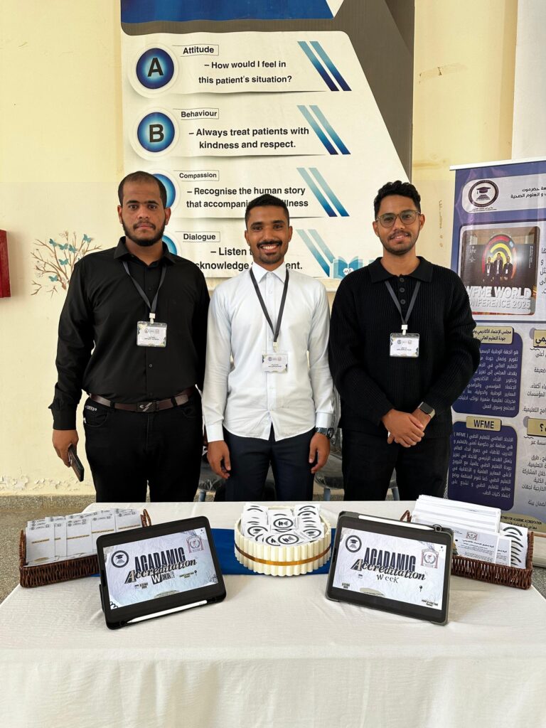 برعاية عميد الكلية الأستاذ الدكتور صالح عوض بحول، دشنت كلية الطب والعلوم الصحية صباح الأحد 9 نوفمبر 2025م أسبوع الجودة والاعتماد الأكاديمي، الذي تنفذه اللجنة الطلابية للاعتماد الأكاديمي بإشراف نيابة شؤون الطلاب ونيابة الجودة والتطوير وخدمة المجتمع، وذلك في مبنيي الكلية بفلك وفوة.