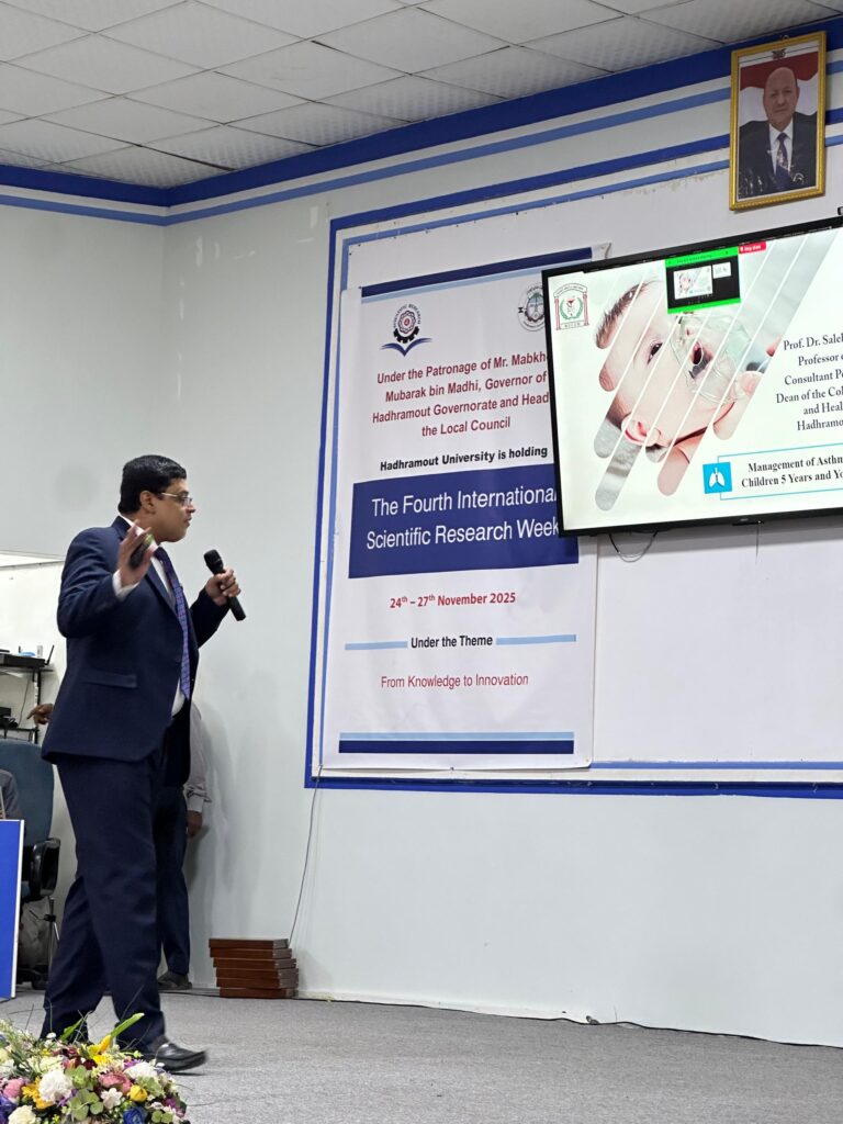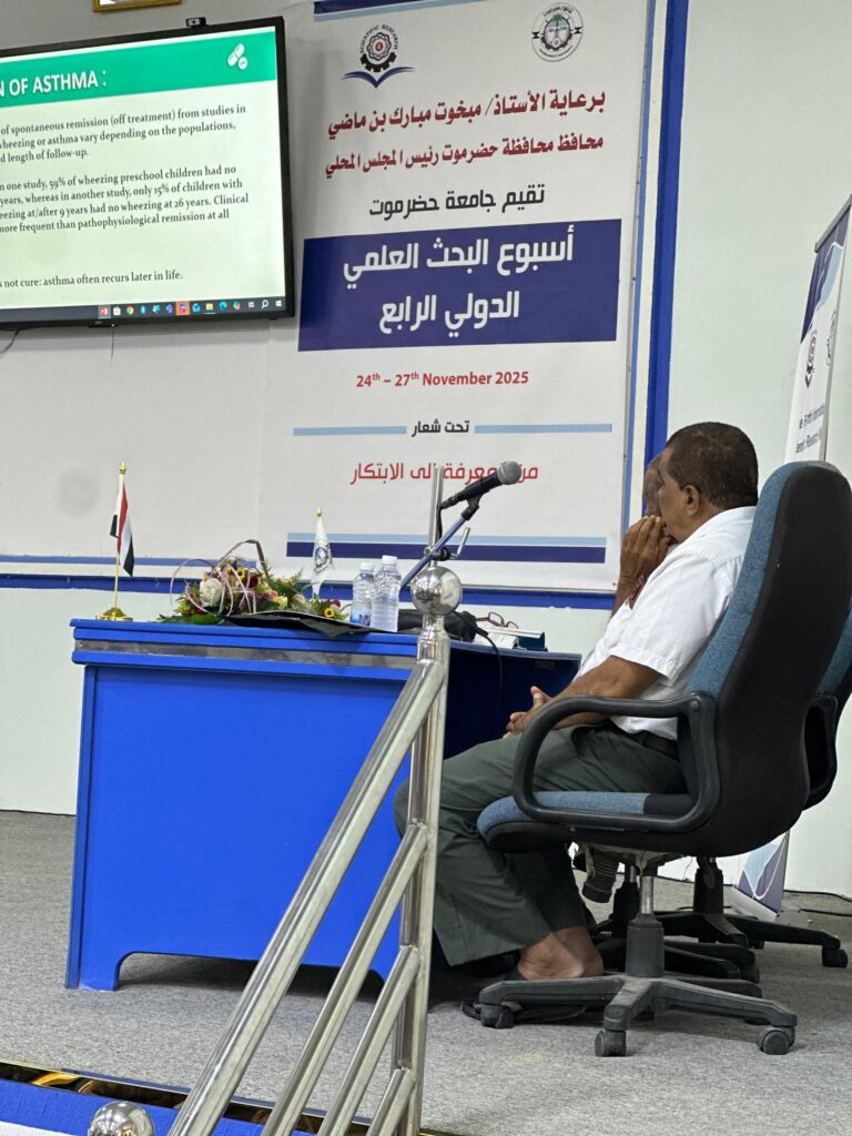 كلية الطب والعلوم الصحية تختتم الندوة العلمية الدولية حول “مستجدات مرض الربو” ضمن فعاليات أسبوع البحث العلمي الدولي الرابع بجامعة حضرموت