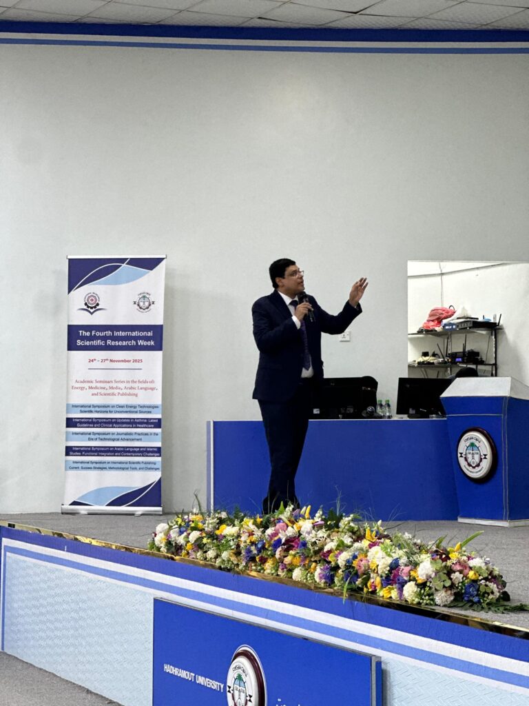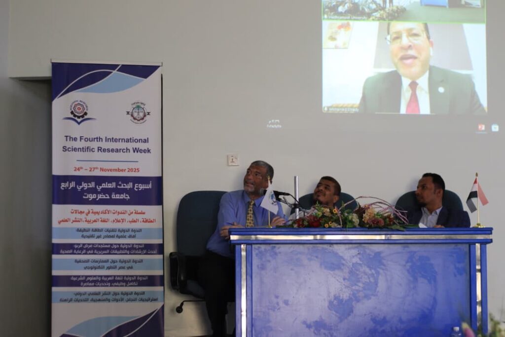 اختتمت كلية الطب والعلوم الصحية بجامعة حضرموت، يوم الثلاثاء الموافق 25 نوفمبر 2025م، أعمال الندوة العلمية الدولية بعنوان: “مستجدات مرض الربو: أحدث الإرشادات والتطبيقات السريرية في الرعاية الصحية“، التي عُقدت في قاعة الأديب علي أحمد باكثير بديوان رئاسة الجامعة، ضمن برنامج أسبوع البحث العلمي الدولي الرابع.