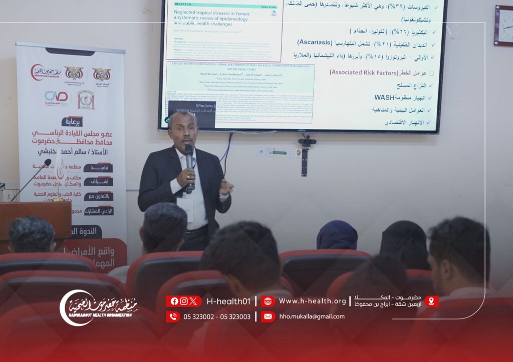 احتفاءً باليوم العالمي للأمراض المدارية المهملة، واستشعاراً للمسؤولية الأكاديمية والمجتمعية في التصدي لهذه التحديات الصحية، استضافت كلية الطب والعلوم الصحية بجامعة حضرموت اليوم الخميس 29 يناير 2026م أعمال “الندوة العلمية الأولى حول واقع الأمراض المدارية المهملة في اليمن بين التحديات والاستجابة”، برعاية كريمة من عضو المجلس الرئاسي و محافظ حضرموت الأستاذ سالم أحمد الخنبشي، وتنظيم من منظمة حضرموت الصحية (HHO)، وإشراف مكتب الصحة العامة والسكان بساحل حضرموت.