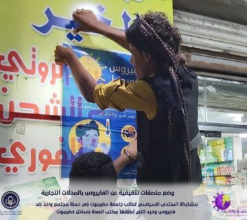 انطلاقا من مسؤوليته تجاه المجتمع المنتدى السياسي لطلاب جامعة حضرموت يشارك في حملة “مجتمع واحد ضد فايروس وحيد”الأندية الطلابيةمارس 28, 2020انطلاقا من مسؤوليته تجاه المجتمع المنتدى السياسي لطلاب جامعة حضرموت يشارك في حملة “مجتمع واحد ضد فايروس وحيد” والتي أطلقها ... المزيد
